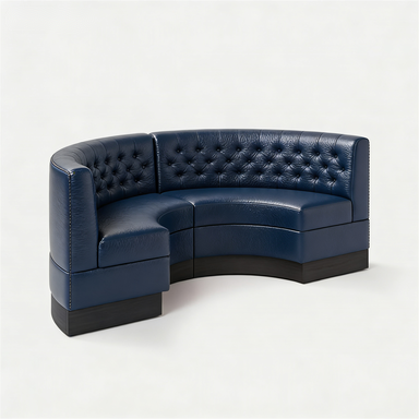U-shaped or enclosed banquettes form a semi-private seating zone by surrounding the table on three sides. This type offers a strong sense of enclosure and exclusivity, increasing both comfort and perceived value. It is commonly used in high-end restaurants and premium hotel dining areas. Due to its curved or angled geometry, this layout demands higher craftsmanship, more complex upholstery work, and tighter dimensional tolerances during manufacturing.