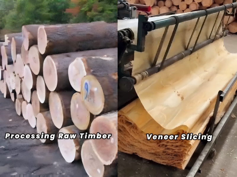Logs are then sliced into thin veneers, typically ranging from 0.4 mm to 1.0 mm in thickness.