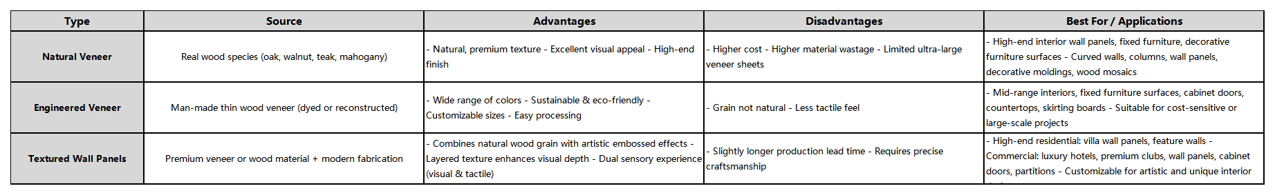 But not all veneer panels perform the same. Natural veneer, engineered veneer, and specialty textured panels each create different visual outcomes, durability levels, and pricing profiles. At the same time, factors such as veneer grading, grain matching, substrate selection, moisture resistance, and finishing quality directly influence how well the panels will age in a 5-star hotel environment.